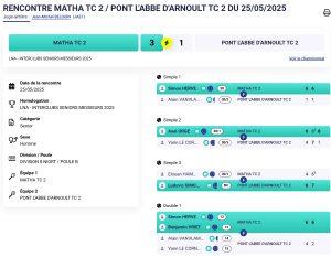 La rencontre fût un peu plus compliquée que prévue, avec 2 matchs en 3 sets dont l’un perdu par Simon. Au final, la victoire est au rendez-vous mais un 4/0 aurait permis d’envisager la dernière journée plus sereinement car Meschers s’est imposer 4/0.